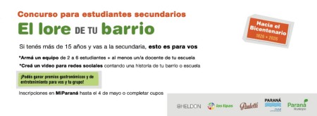 La Direccción de Juventudes de la Municipalidad de Paraná, invita a los estudiantes de 4to, 5to, 6to y 7mo año para participar de la iniciativa "El lore de tu barrio".